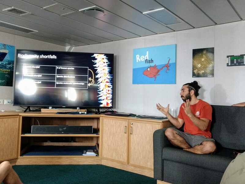Jeremy (my room mate) gave a great talk on the biodiversity black spots in the ocean. Most of what we know is limited by observations that are mainly clustered along coastlines and at shallow depths. Data points decrease rapidly with depth due to the difficulty of sampling.