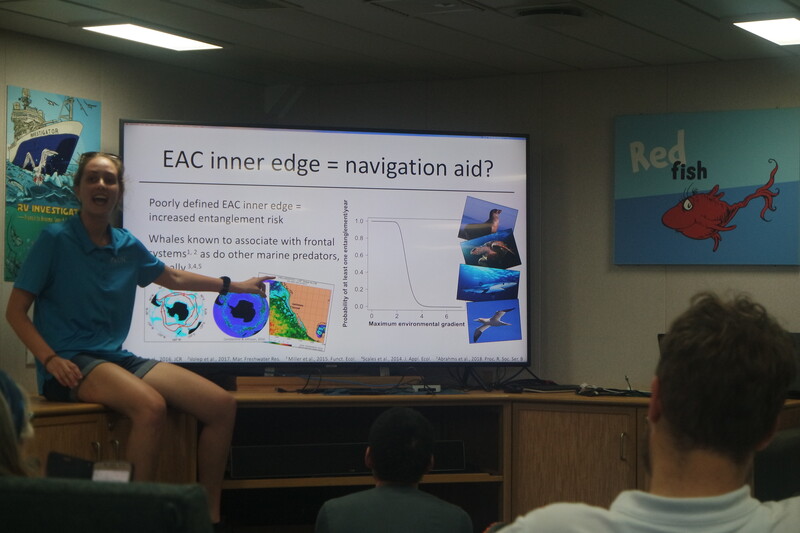 Whales migrate along the East Australian Current (EAC) and sense changes in temperature to figure out whether they’re on course. Humpback Whales occasionally drift off-course or get trapped in fishing nets. Jessie Bolin is using a data-driven approach to quantify the meander of the EAC and the most likely migration route for Humpbacks. Follow Jessie Bolin on Twitter @JessieABolin for more.