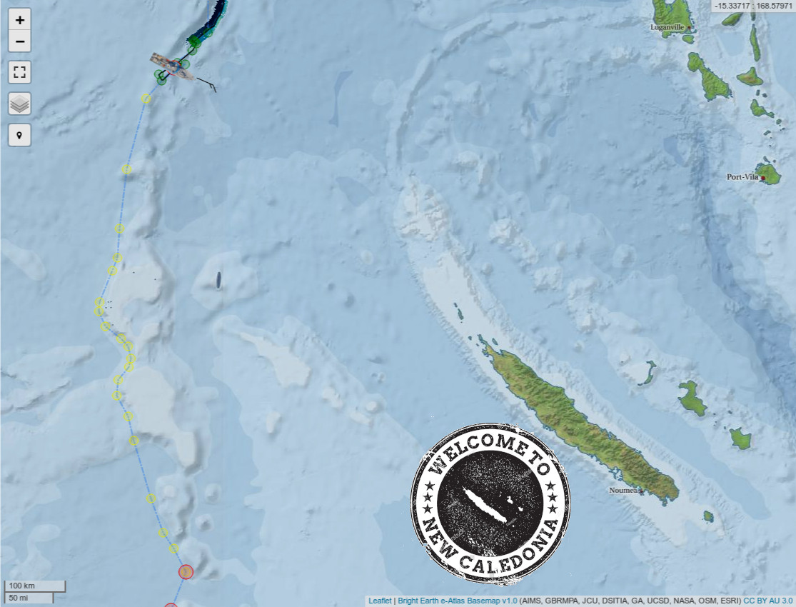 Today we passed into New Caledonian waters! Quinn gets another (unofficial) passport stamp to add to her collection.