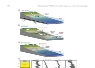 This study uses computer simulations to explore how deltas on passive continental margins respond when sea level rises and falls due to climate cycles. When sea level drops, sediment is deposited further offshore and the weight on the crust shifts; when sea level rises, the pattern reverses. The results show that the crust responds in both directions over timescales of 100,000 to 1,000,000 years, and this flexing is closely tied to the speed and magnitude of sea level change.