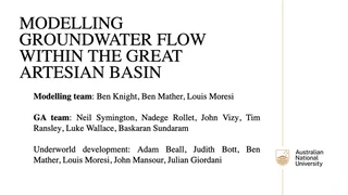 Modelling Groundwater flow within the Great Artesian Basin Modelling team : Ben Knight, Ben Mather, Louis Moresi GA team : Neil Symington, Nadege Rollet , John Vizy , Tim Ransley , Luke Wallace, Baskaran Sundaram Underworld development: Adam Beall, Judith Bott, Ben Mather, Louis Moresi , John Mansour, Julian Giordani ANU School of Earth Sciences | Groundwater flow within the GAB 05 04 2022 00 2 ANU School of Earth Sciences | Groundwater flow within the GAB 05 04 2022 The Approach Sophisticated parallel codes that are (relatively) easy to use. Long term support: AuScope 3 ANU School of Earth Sciences | Groundwater flow within the GAB 05 04 2022 The Approach Build your models in a Jupyter notebook in python. Write documentation as you go. Share online. Deploy in a high-performance computing environment as a python script. Parallel version “just works” 4